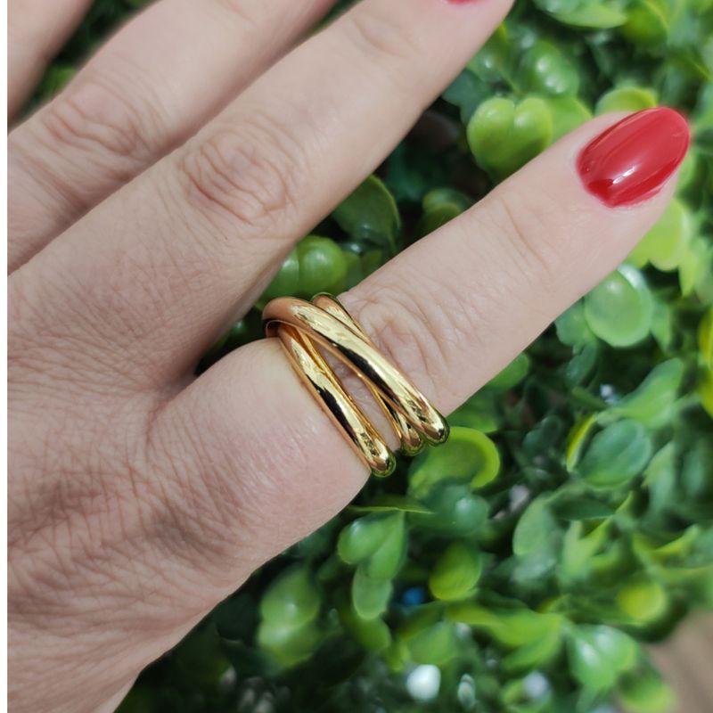 Anel com detalhes de elos folheado a ouro