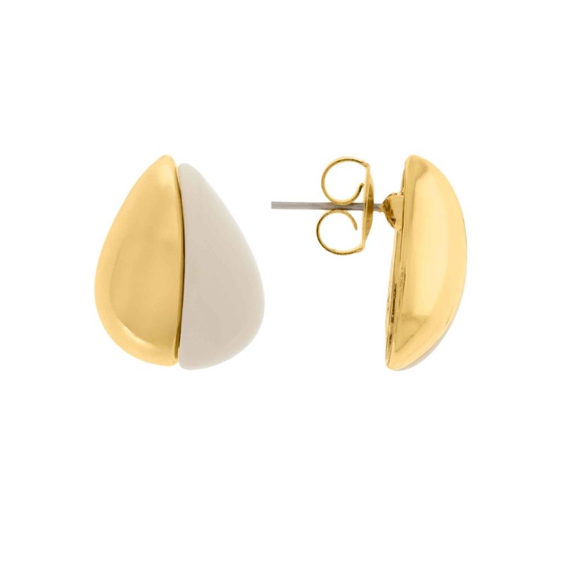 Brinco de Pino Formato Gota Bege – Folheado a Ouro (2 cm)