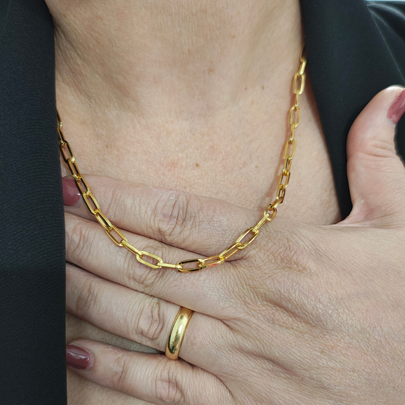 Colar correntaria Italia ( elos quadrados) M 45 cm folheado em ouro