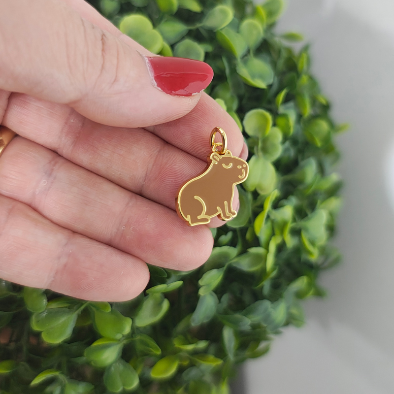 Pingente Capivara resina marrom folheado em ouro