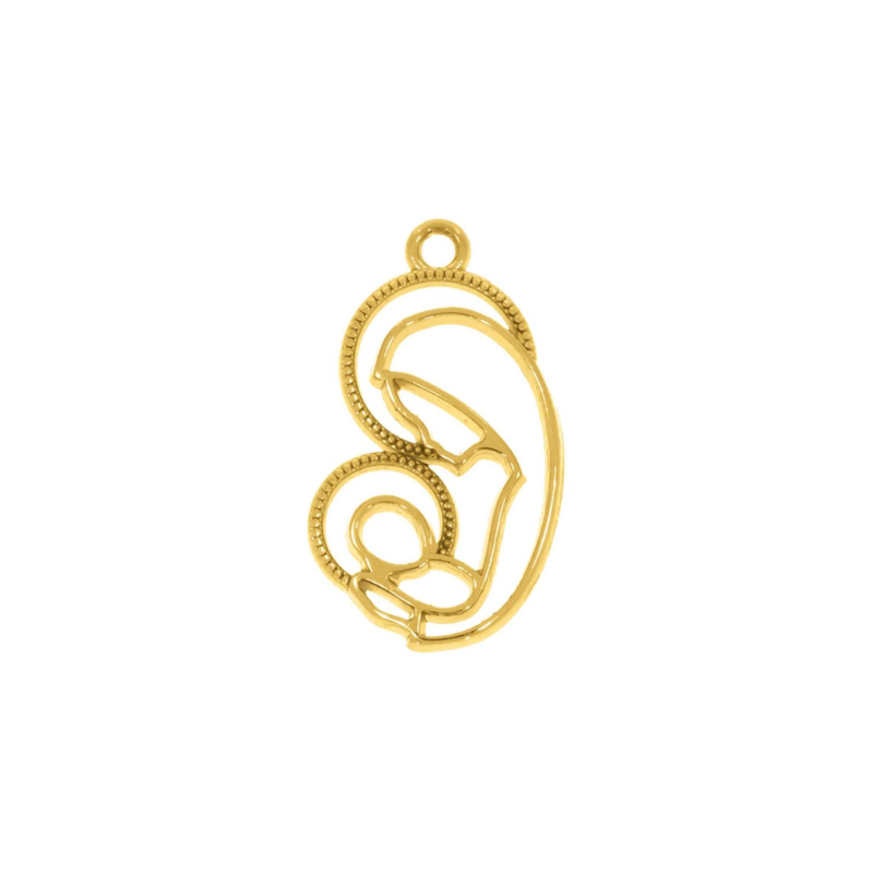 Pingente de nossa senhora vazada com jesus no colo folheada em ouro
