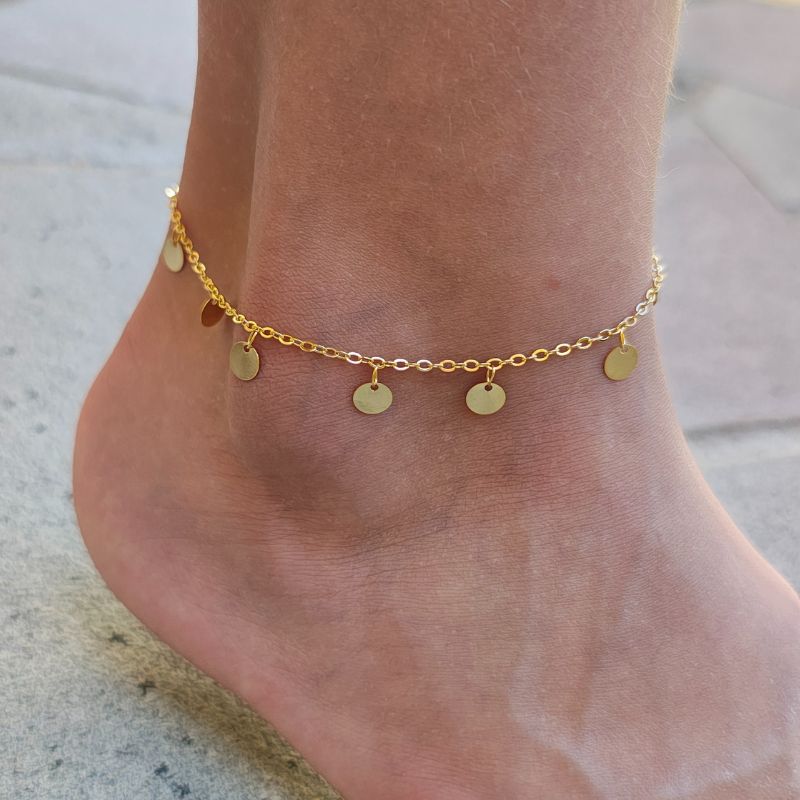 Tornozeleira corrente com medalhinhas ( moedinha) Folheado em ouro (LIMITADO)